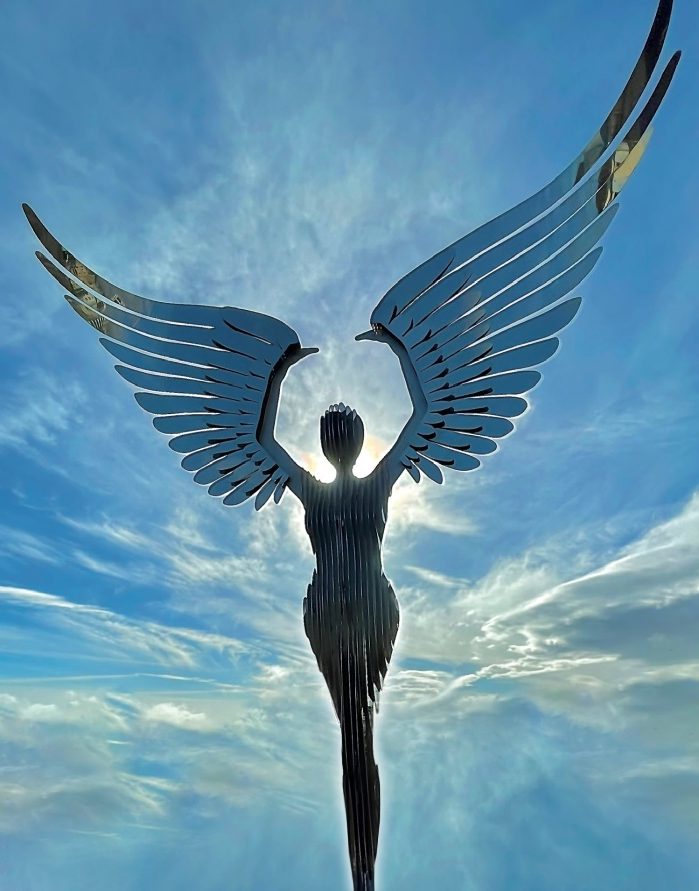 The angel sculpture has taken over five years of incredibly complicated and intense work especially the shape of the wings that eventually inspired by the outstretched wings of a white dove.